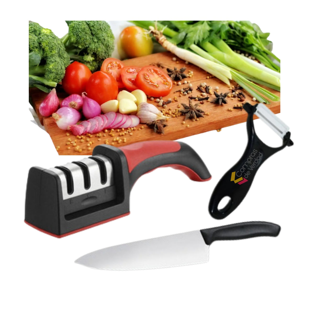 Combo 3 En 1 Cuchillo, Afilador Y Pelador De Papa